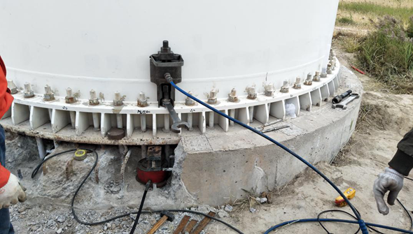 本工程于2017年實(shí)施,項(xiàng)目位于吉林省大安市威舍利風(fēng)電場(chǎng),主要是對(duì)風(fēng)機(jī)錨板不平進(jìn)行糾偏處理。