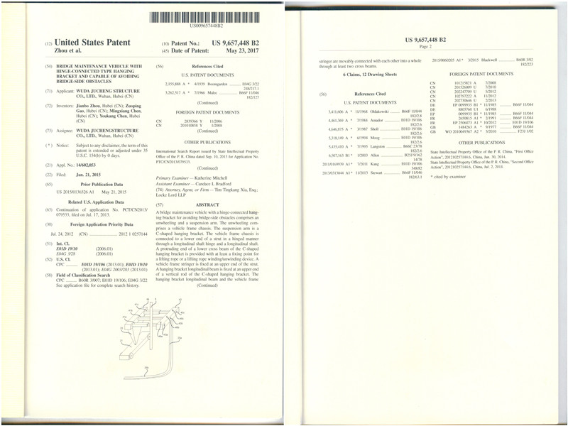 熱烈祝賀我公司不封道橋梁檢修架車發(fā)明專利獲美國授權