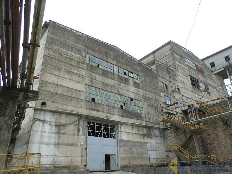 項目概況:二期磨浮工段28m3浮選廠房為單層混凝土柱排架結構,于1983年開工建設。廠房平面整體呈矩形布置,南北向長度約168m,東西向寬度約24.0m,建筑面積約4032㎡。