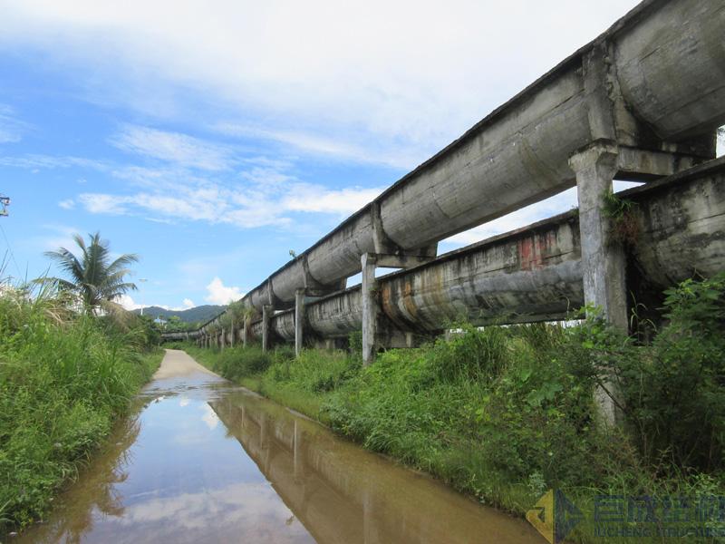 項目概況:三亞赤田水庫灌溉渡槽建成于1995年,經(jīng)過二十余年使用,目前渡槽槽身及支架存在鋼筋銹脹、鋼筋外露銹蝕、混凝土開裂、破損、滲漏等外觀質(zhì)量缺陷現(xiàn)象,現(xiàn)業(yè)主方擬對該渡槽進(jìn)行修復(fù)加固處理。