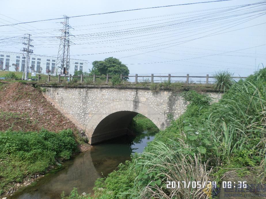 項(xiàng)目概況:國(guó)電江西電力有限公司萬(wàn)安水力發(fā)電廠生活區(qū)南河橋是一座單跨上承式單波雙曲拱橋。為了解南河橋的結(jié)構(gòu)現(xiàn)狀,判斷橋梁結(jié)構(gòu)承載能力是否滿足安全通行進(jìn)出廠重載車的荷載要求,2018年7月,中國(guó)國(guó)電集團(tuán)江西電力有限公司萬(wàn)安水力發(fā)電廠委托我公司技術(shù)人員對(duì)本橋進(jìn)行現(xiàn)場(chǎng)檢測(cè)及靜、動(dòng)載試驗(yàn),為后期橋梁使用、養(yǎng)護(hù)和加固提供依據(jù)。