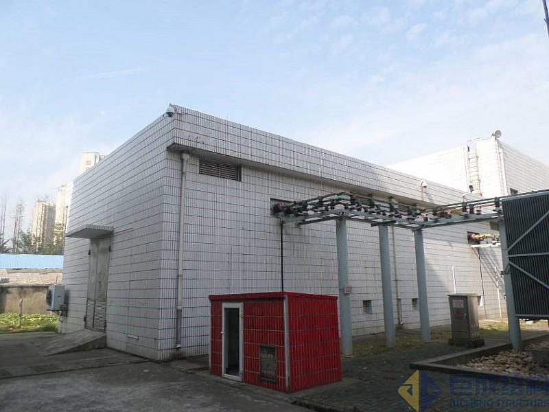 主控樓建筑平面呈菜刀形布置,建筑總長(zhǎng)約37.3m,總寬約12.2m,主體結(jié)構(gòu)為兩層(南側(cè)配電室為一層)框架結(jié)構(gòu),建筑總高約為11.1m,總建筑面積約594.1m2。主控樓一樓南側(cè)為配電室,北側(cè)為電容器室、雜物間及廚房,二樓為控制室及資料室。