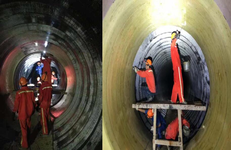 武大巨成于10月1日開始著手準(zhǔn)備,10月4日獲得正式工作面,高峰時(shí)期42人同時(shí)下管作業(yè),完成2900㎡碳布粘貼,共15節(jié)玻璃鋼夾砂管加固,最終平安順利、高質(zhì)保量地完成了搶修任務(wù),再次解決了深圳市原關(guān)外近300萬人的吃水保障問題,同時(shí)解除了東江水源工程2018年度停水檢修工作面臨推遲的警報(bào)!