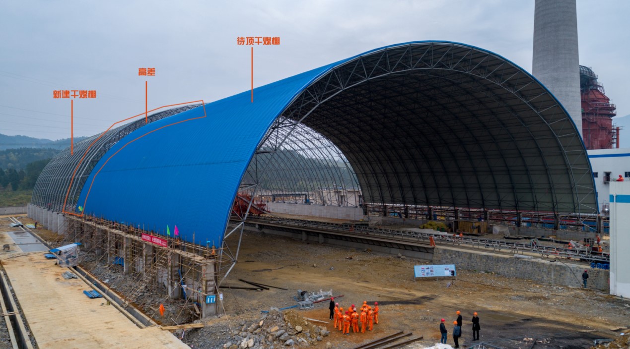 2019年3月29日,巨成結(jié)構(gòu)在西南山區(qū)某電廠完成71米大跨度鋼結(jié)構(gòu)整體頂升,頂升高度1.8m。該大跨度鋼結(jié)構(gòu)干煤棚與新購鏟煤機高度差1.5m,采用了巨成鋼滑道頂升專利方案,綜合造價僅為拆除重建的四分之一。