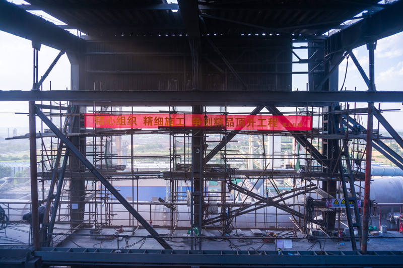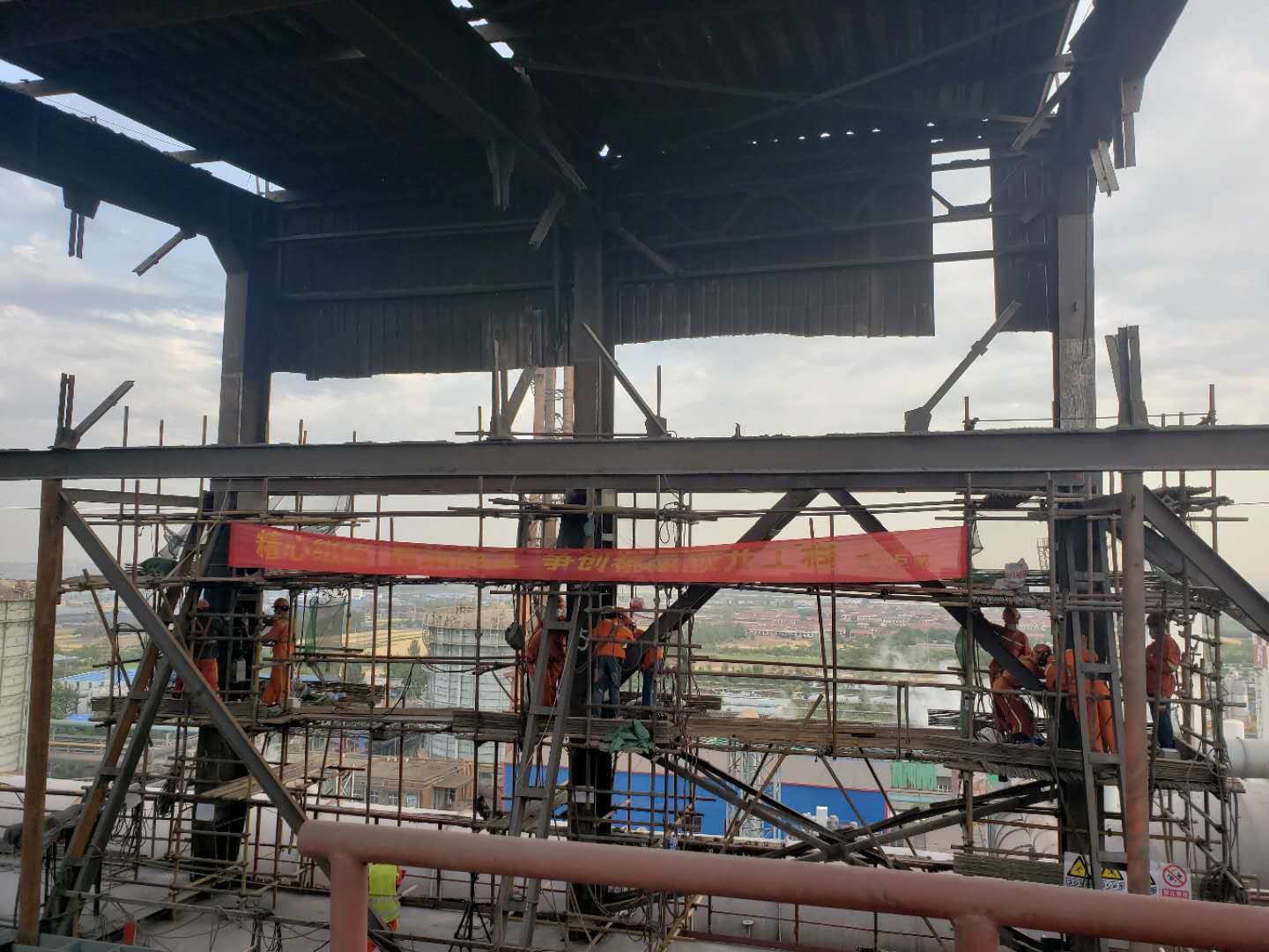 工程中鋼結(jié)構(gòu)框架位于煉鋼廠房最頂層的復(fù)雜環(huán)境,加上煉鋼廠房各層不停產(chǎn),交叉作業(yè)較多,現(xiàn)場(chǎng)溫度高,工作難度非常大。為了確保頂升順利實(shí)施,公司領(lǐng)導(dǎo)對(duì)可能遇到的困難高度關(guān)注,從方案討論、圖紙?jiān)O(shè)計(jì)、到施工組織每一步都精心控制。董事長(zhǎng)高作平教授親自指導(dǎo)工作,指出鋼滑道頂升既有建筑物是巨成的獨(dú)創(chuàng)核心科技,本工程是該技術(shù)的創(chuàng)新應(yīng)用,務(wù)必做到安全可靠,為鋼滑道頂升既有建筑物規(guī)程的編制積累數(shù)據(jù)。公司派出了強(qiáng)大的設(shè)計(jì)和安全團(tuán)隊(duì)為現(xiàn)場(chǎng)提供有力的技術(shù)支持。在第一個(gè)頂升日中,原計(jì)劃需耗時(shí)一整天頂升量60公分的工作,僅僅用時(shí)兩個(gè)小時(shí)就順利完成。超出了所有人的預(yù)期,獲得了業(yè)主、監(jiān)理等各方的喝彩。頂升工程最關(guān)鍵的是安全問題,項(xiàng)目組在接下來的工作中穩(wěn)扎穩(wěn)打,不畏辛勞,乘勝追擊,在頂升間歇期做好所有焊接和安全工作,至6.1日按計(jì)劃順利完工。