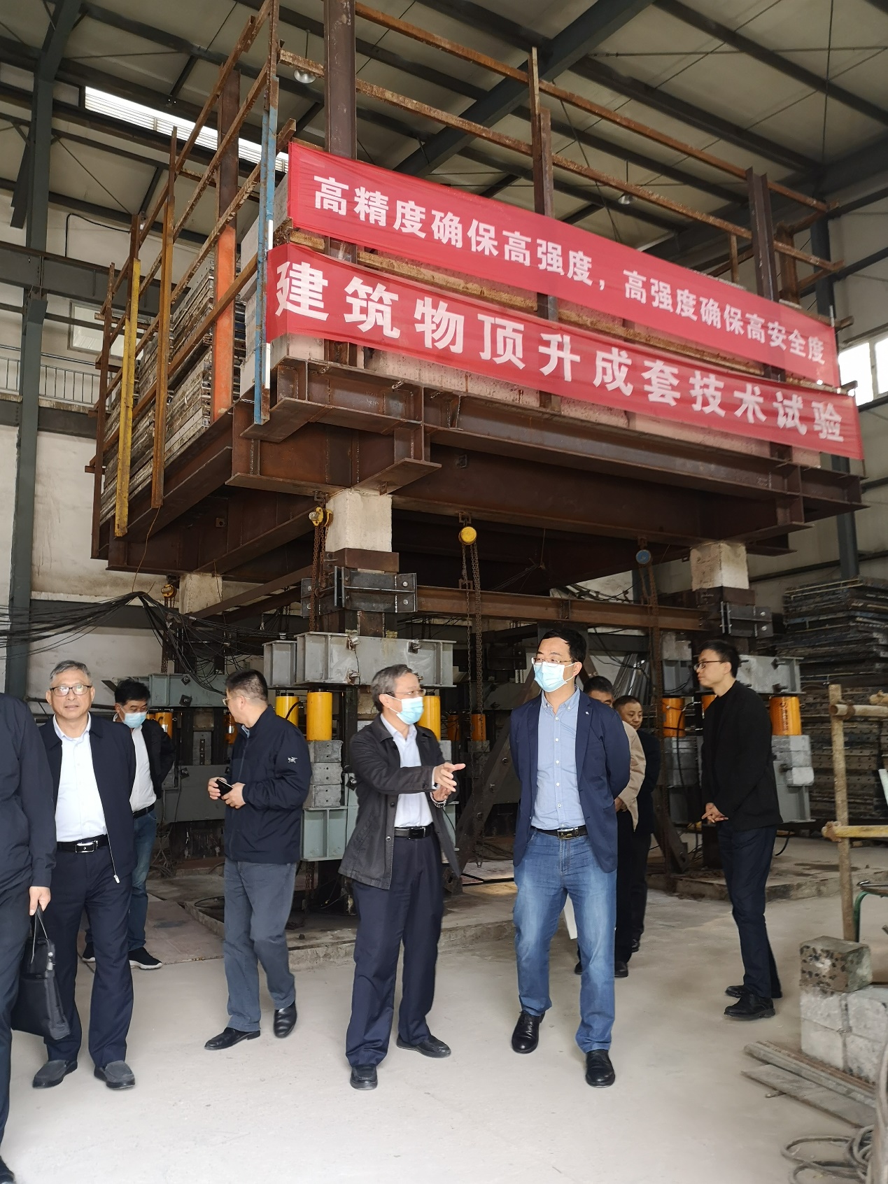 陳萬波董事長一行參觀巨成頂升試驗(yàn)