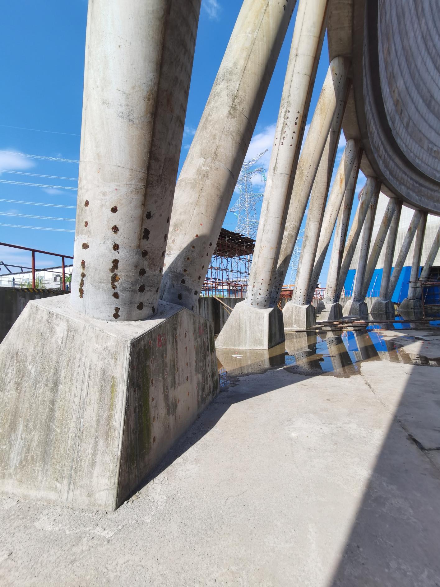 豐城電廠7#冷卻塔因發(fā)生過特大安全生產(chǎn)事故,為各方所關(guān)注。2020年復(fù)工后,巨成結(jié)構(gòu)憑借過硬的技術(shù)實(shí)力,榮譽(yù)承接了冷卻塔筒壁設(shè)計與加固工程。該工程屬于高危項(xiàng)目,開工前,巨成結(jié)構(gòu)的設(shè)計方案和施工組織設(shè)計均通過了專家論證。其中采用的多項(xiàng)巨成專有技術(shù)也得到了各位專家的認(rèn)可,如:擴(kuò)孔自鎖錨固技術(shù)保證新舊混凝土緊密結(jié)合、補(bǔ)償收縮細(xì)石混凝土保證施工質(zhì)量、便攜式鋼平臺保證施工安全、曲線施工升降機(jī)保證垂直運(yùn)輸。