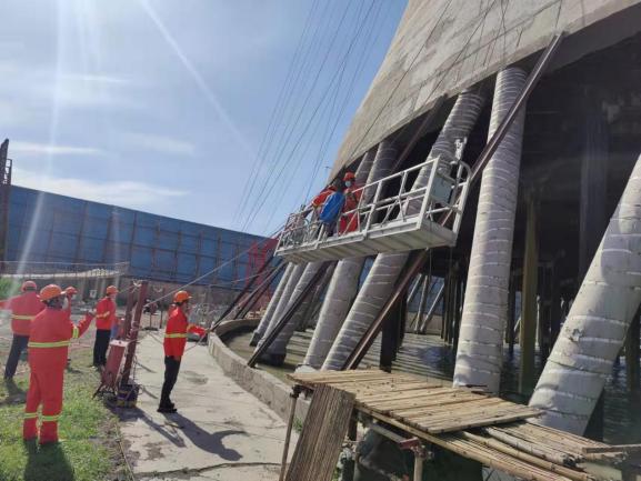 山東天源熱電有限公司三電廠2#涼水塔加固項(xiàng)目,位于山東省淄博市桓臺縣馬橋鎮(zhèn),2011 年投入使用,為5500㎡的雙曲線自然通風(fēng)涼水塔,總高度為 115.00m,塔筒外壁涂裝21382㎡,內(nèi)壁涂裝21230㎡,合同總造價為1565.5萬元。本工程從2021年8月8日開始施工,預(yù)計(jì)將于2022年6月底完工。