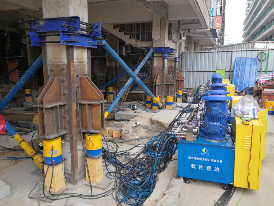 巨成結(jié)構(gòu)是中國標(biāo)準化協(xié)會標(biāo)準《鋼滑道頂升改造老舊小區(qū)技術(shù)規(guī)程》和湖北省地方標(biāo)準《鋼滑道頂升增層技術(shù)規(guī)程》的主編單位。本次糾偏采用的是巨成群控同步頂升成套設(shè)備。巨成結(jié)構(gòu)在2021年12月8日發(fā)布了集中控制同步頂升成套設(shè)備,采用了德國西門子的5種芯片,讓頂升、糾偏、平移、旋轉(zhuǎn),實現(xiàn)了數(shù)字化信息化。目前已升級為群控同步頂升成套設(shè)備,可同時控制30000個千斤頂,誤差在0.3mm以內(nèi)。