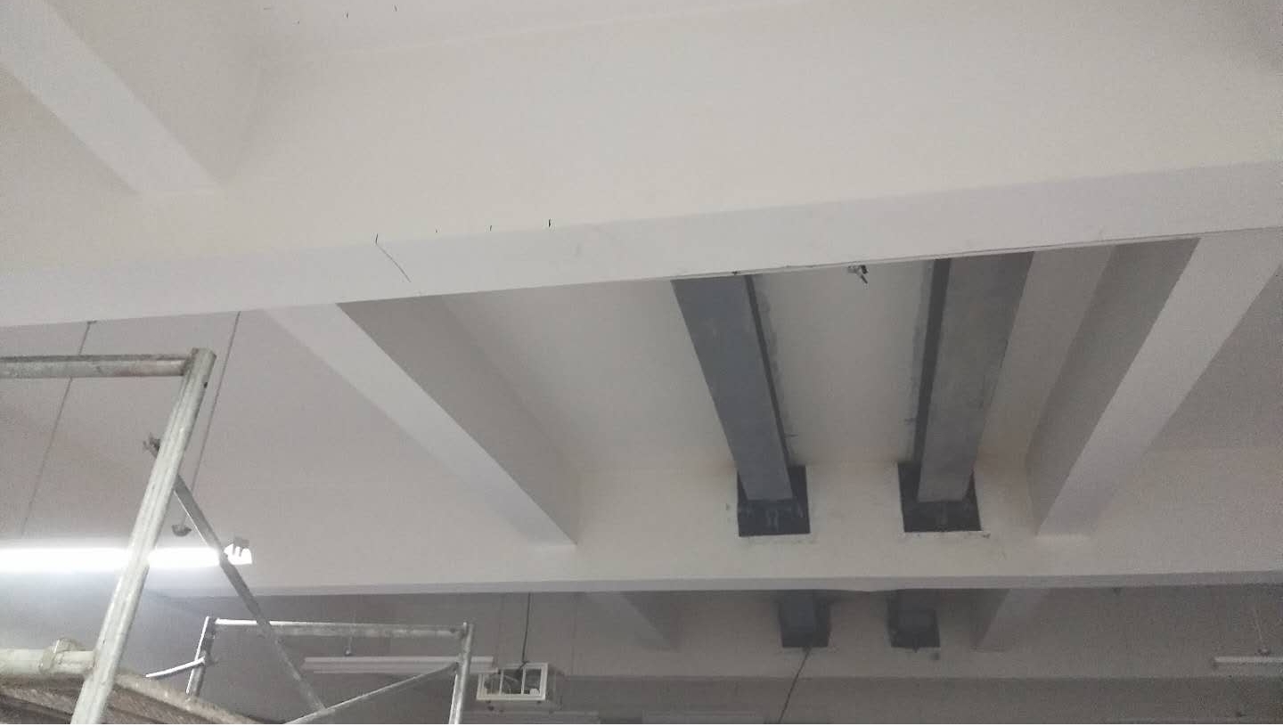 ?沙宜家購(gòu)物中?項(xiàng)?因新增防?卷簾造成的樓?荷載增加,經(jīng)加固設(shè)計(jì),對(duì)混凝?板厚不滿(mǎn)?設(shè)計(jì)要求處采?板下新增型鋼結(jié)構(gòu)加固處理。