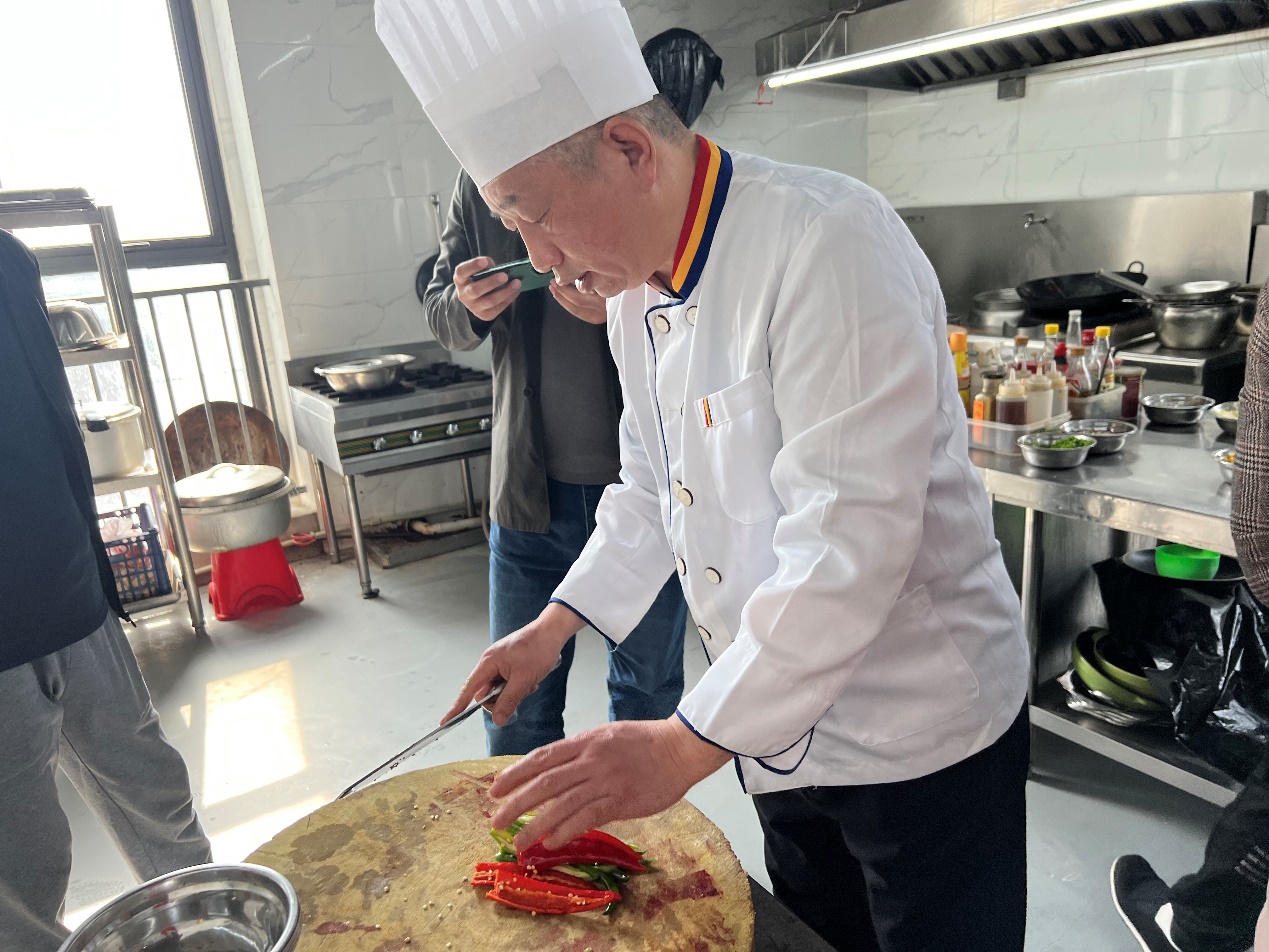 在培訓(xùn)現(xiàn)場,管大廚為大家詳細(xì)講解烹飪的各個(gè)環(huán)節(jié),從選擇原材料、食材粗加工,再到菜肴制作技巧,主料、輔料的用量及放置順序等,對烹飪過程中的關(guān)鍵步驟進(jìn)行重點(diǎn)指導(dǎo)。管大廚通過理論結(jié)合實(shí)際,煎炒燜炸鹵燉,邊講授邊操作,不少認(rèn)真好學(xué)的學(xué)員紛紛拿出手機(jī),拍攝教學(xué)視頻或記錄操作步驟。通過培訓(xùn),巨成全體廚師表示將舉一反三,提高個(gè)人烹飪技能,更好地為巨成員工制作味美、健康的工作餐。員工也學(xué)會(huì)了一兩道拿手菜,提升家人舌尖上的幸福。