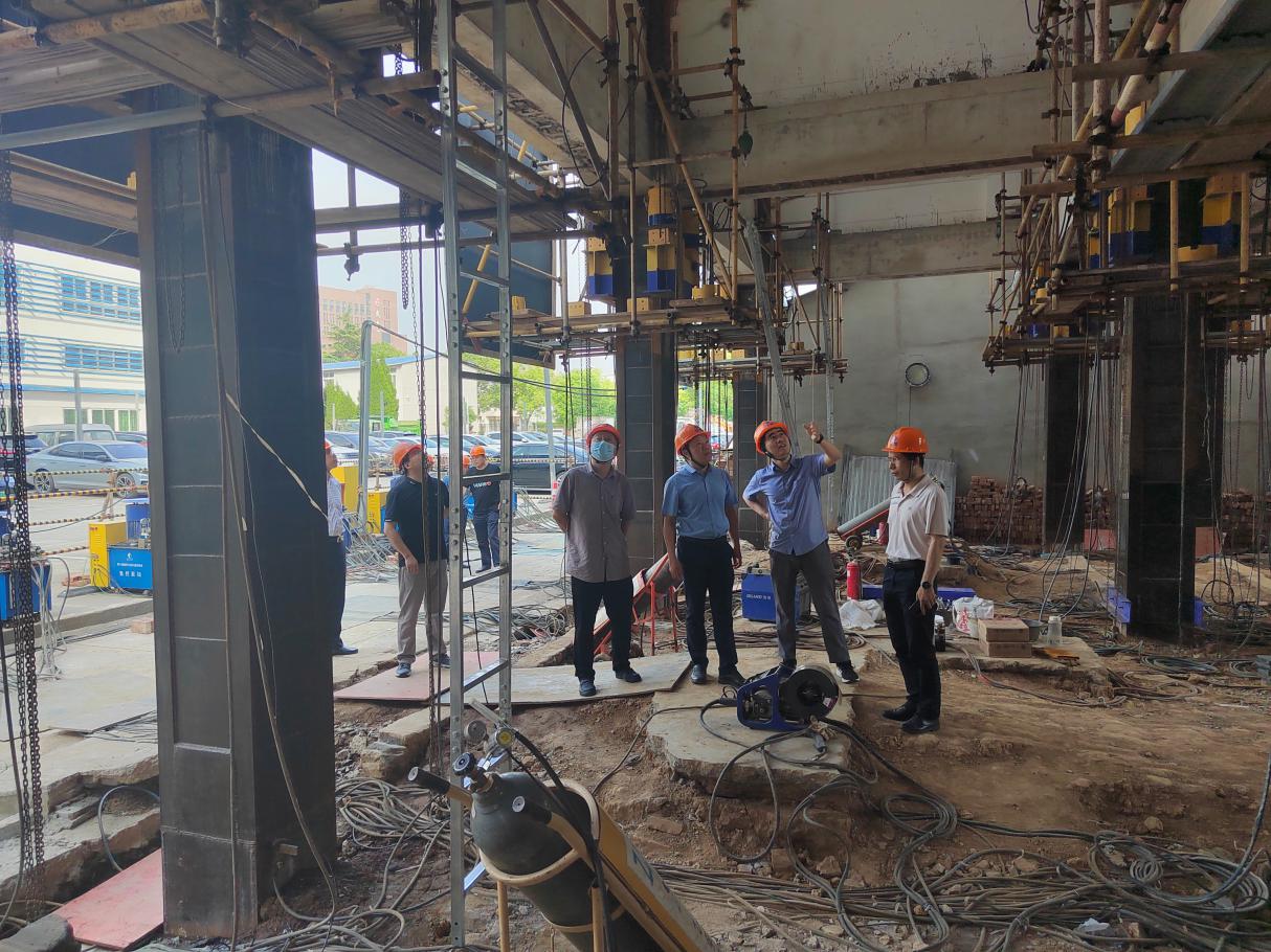 張總一行來(lái)到巨成群控同步頂升工程試驗(yàn)項(xiàng)目現(xiàn)場(chǎng),巨成副總經(jīng)理廖杰洪介紹了頂升試驗(yàn)的背景和目的,并對(duì)群控同步頂升大型數(shù)控設(shè)備以及頂升原理等做了詳細(xì)講解。雙方對(duì)鋼滑道頂升技術(shù)應(yīng)用場(chǎng)景展開(kāi)了熱烈討論,并就試驗(yàn)過(guò)程中的相關(guān)技術(shù)要點(diǎn)進(jìn)行了深入交流。大家一致認(rèn)為巨成群控同步頂升技術(shù)能夠在城市更新、老舊小區(qū)改造、城市立交橋改造等領(lǐng)域發(fā)揮重大作用。