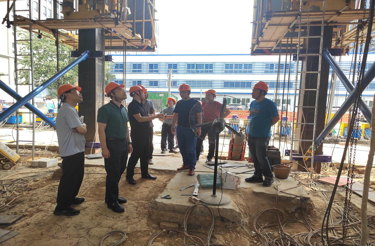中輕武設(shè)李總一行來到巨成群控同步頂升工程試驗項目現(xiàn)場,副總經(jīng)理廖杰洪介紹了頂升試驗內(nèi)容和目的,并對群控同步頂升大型數(shù)控設(shè)備以及頂升原理等做了詳細講解。雙方在現(xiàn)場展開了熱烈討論,并就試驗過程中的相關(guān)技術(shù)要點進行了深入交流。