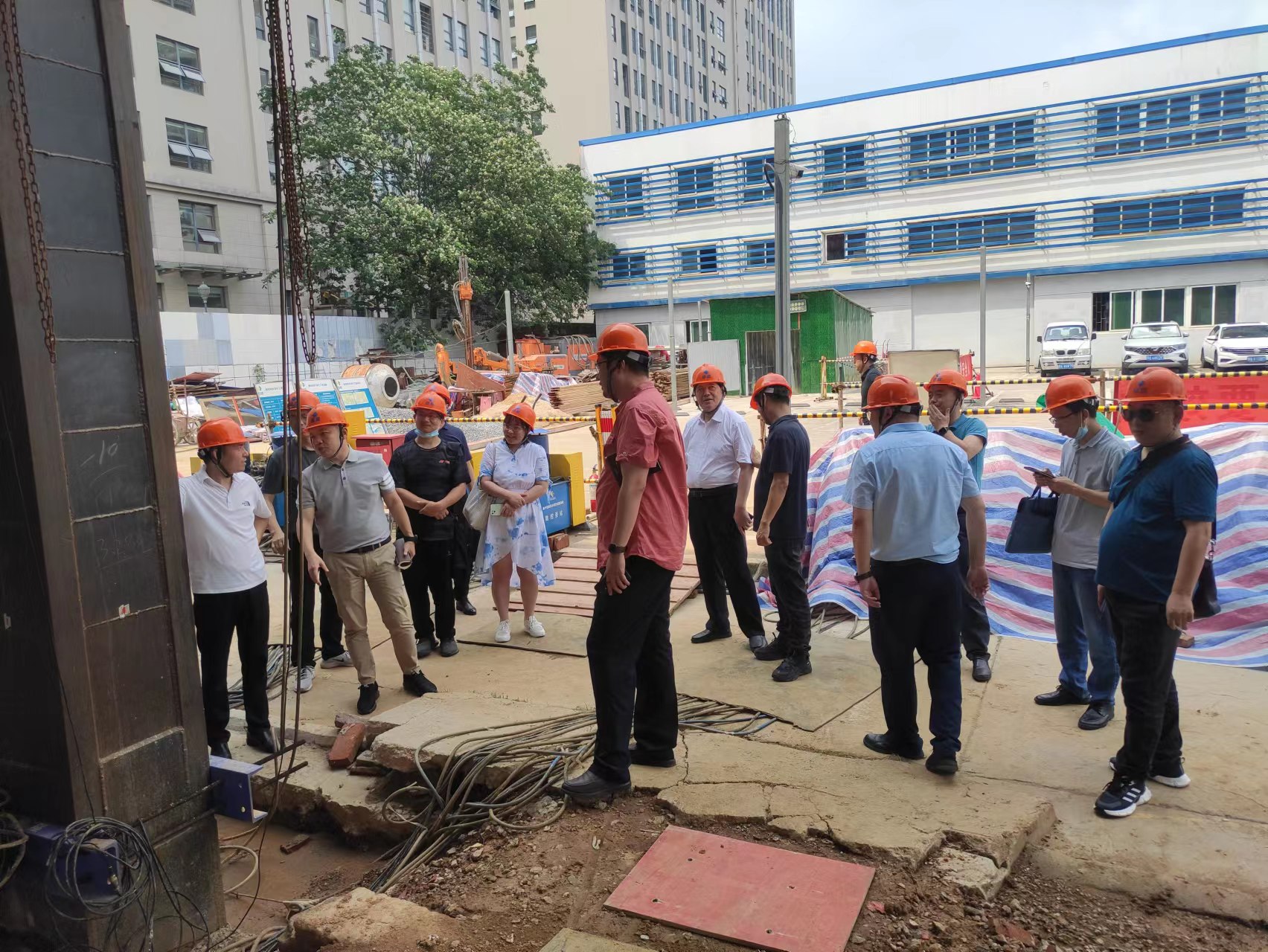 楊德斌董事長(zhǎng)一行參觀了巨成群控同步頂升工程試驗(yàn)項(xiàng)目現(xiàn)場(chǎng),武漢代表處主任龍舟介紹了頂升試驗(yàn)的背景、目的和群控同步頂升大型數(shù)控設(shè)備以及頂升應(yīng)用前景。雙方對(duì)鋼滑道頂升技術(shù)和應(yīng)用場(chǎng)景展開(kāi)了深入的討論和交流,大家一致認(rèn)為巨成群控同步頂升技術(shù)能夠在城市更新、老舊小區(qū)改造等領(lǐng)域發(fā)揮重大作用。