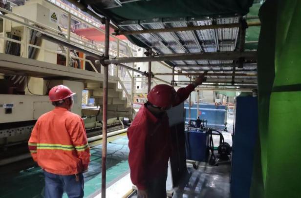 重點檢查腳手架平臺的搭設情況、腳手板的綁扎情況、上下層行車走道的生命繩狀態(tài)、頂部行車平臺的生命繩以及鋼構(gòu)施工平臺的焊接情況。確保腳手架作業(yè)平臺的安全、各處生命繩的狀態(tài)完好,并監(jiān)控作業(yè)人員施工時系掛安全帶的行為。
