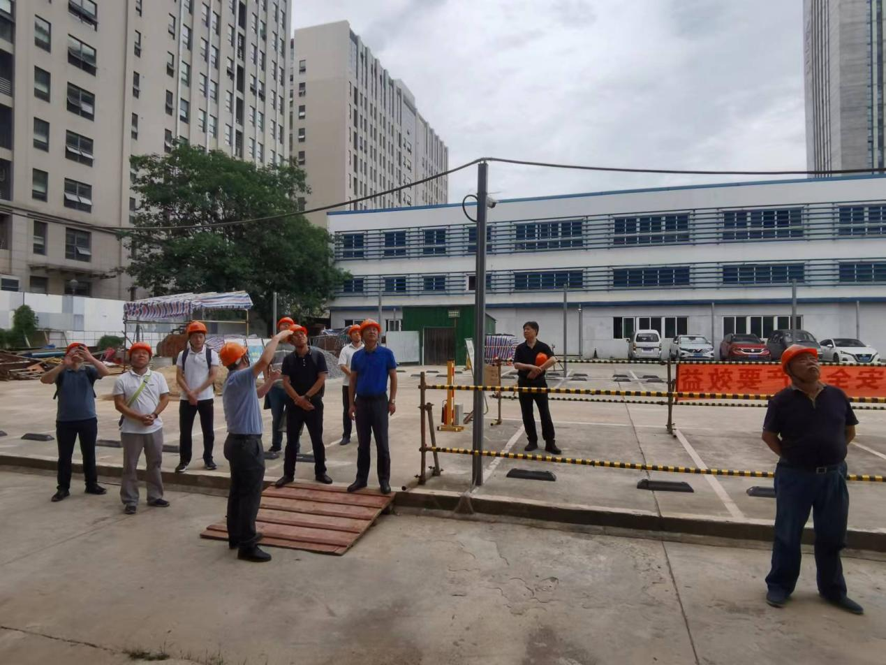 敖總一行首先參觀了巨成群控同步頂升工程試驗,現場就鋼滑道頂升技術原理和應用場景展開了討論和交流,對巨成頂升技術應用于大型工程頂升改造和老舊小區(qū)改造有重要意義。