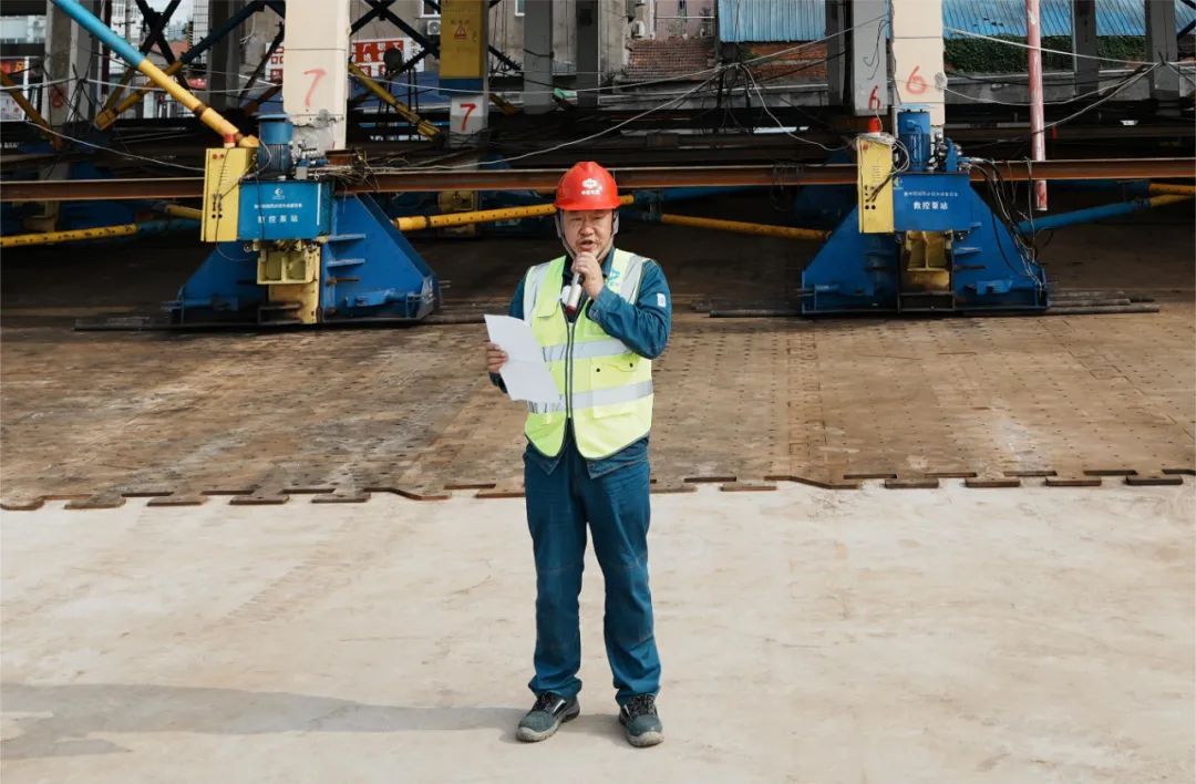 巨成公司董事長高作平代表公司感謝了業(yè)主、總包、監(jiān)理的強(qiáng)力支持。他指出,今天既是鄂州電廠消防大樓移位工程成功的慶典,更是鋼滑道剛性平面軸心旋轉(zhuǎn)法與鋼滑道剛性軸線同步頂推平移法工程試驗(yàn)成功的新聞發(fā)布會(huì)。此次鄂州電廠消防站遷移工程的成功實(shí)施,是巨成鋼滑道理論在建筑物旋轉(zhuǎn)、平移領(lǐng)域的創(chuàng)新應(yīng)用,是巨成公司鋼滑道理論在頂升、頂降、糾偏之后的進(jìn)一步完善與拓展。如果將此前的移位技術(shù)比作公路運(yùn)輸,鋼滑道理論的移位相當(dāng)于鐵路問世。巨成鋼滑道理論在建筑物改造領(lǐng)域潛力巨大,巨成將一如既往地在建筑物改造領(lǐng)域拓展發(fā)力,為建筑業(yè)新質(zhì)生產(chǎn)力貢獻(xiàn)巨成力量。