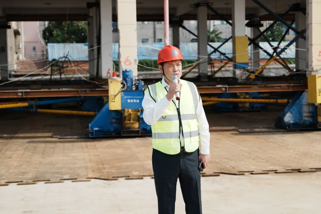 今天,這既是一個慶典儀式,也是一個新聞發(fā)布會。中煤鄂州電廠擴建項目消防站今天平移到位,我們在這里舉行慶典慶祝。巨成鋼滑道移位技術,之前做了很多室內(nèi)試驗都很成功,但是沒有做工程試驗。我們的好伙伴中南電力設計院,允許我們在這里做工程試驗。大家知道,第一次旋轉(zhuǎn)、第一次平移,大家很揪心。但是第二次旋轉(zhuǎn),第二次平移,我們?nèi)〉昧送黄菩赃M展,創(chuàng)造了新的速度紀錄。所以,今天也是一個新聞發(fā)布會,是鋼滑道旋轉(zhuǎn)與鋼滑道平移工程試驗成功的新聞發(fā)布會。